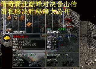 传奇霸业,作为一款经典的传奇类游戏,以其热血激情的PK玩法和丰富的游戏内容而著称。巅峰对决合击传奇私服,作为传奇霸业的衍生版,集结了原版游戏的精华,并在此基础上进行了创新和优化,为玩家带来更加刺激和爽快的游戏体验。本文将深入解析巅峰对决合击传奇私服的决胜秘籍,助玩家叱咤玛法大陆,称霸传奇霸业。